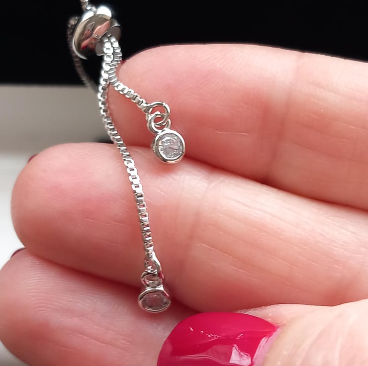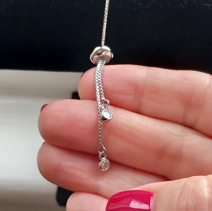 This is a slider bracelet so will fit most sizes of wrist & has tiny diamonte on the ends