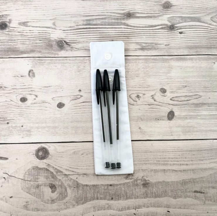 Cotton fabric pen holder pouch. Perfect for putting into your bag to stop your pens from getting lost! They can comfortably fit 3 pens.