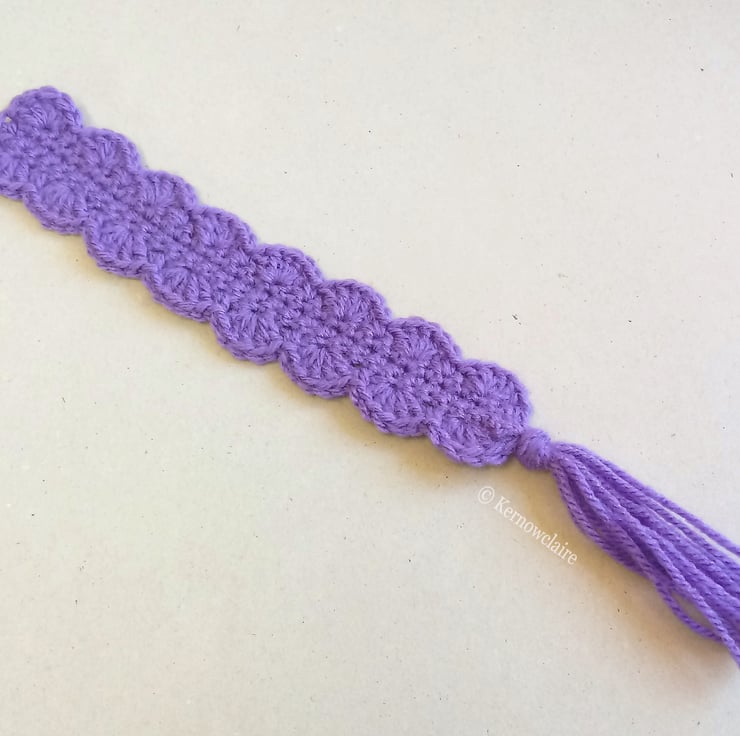 Handmade in a purple acrylic yarn in a pretty pattern.