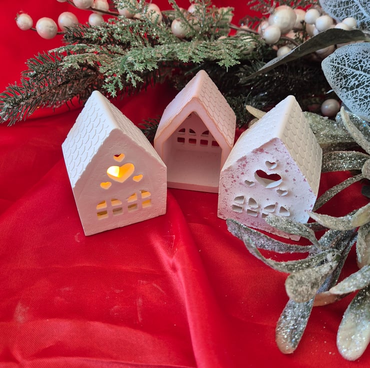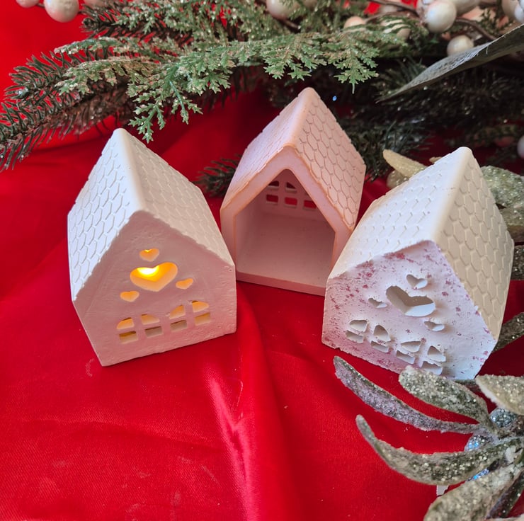 Handcrafted using stonecast powder this cute little house shines bright with a little tealight inside.