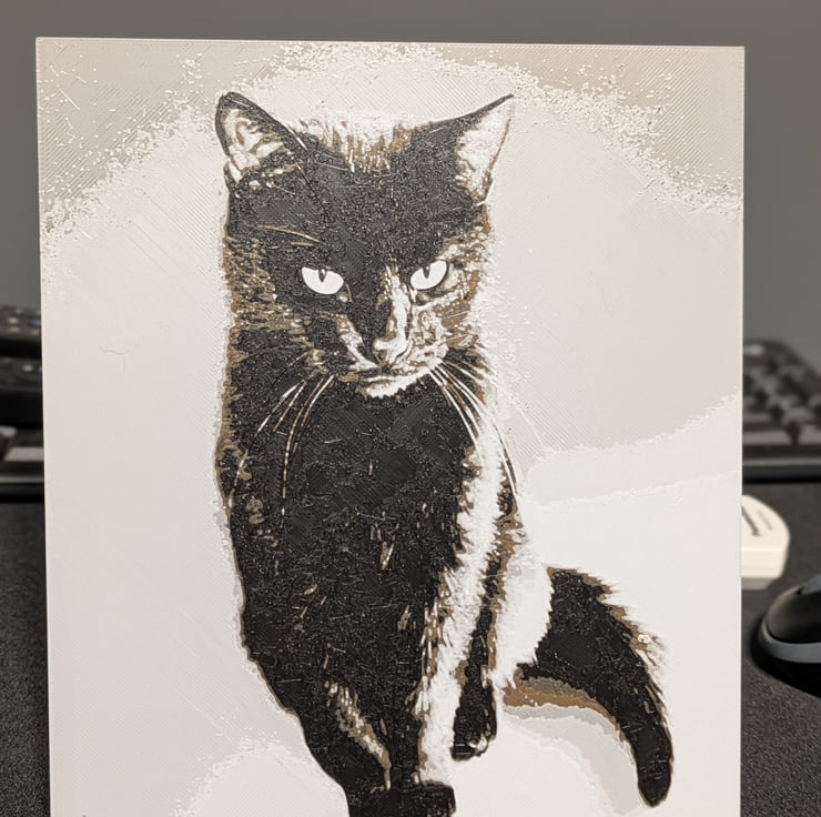 A custom 3D pet portrait which is designed and created by me at home, made especially for you using your chosen photo. Each image is carefully refined and digitally modelled before being 3D printed to produce a detailed, textured finish that captures your pet beautifully.