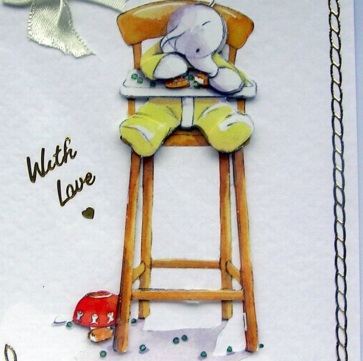 Elephant Calf in High Chair - Hand Crafted 3D Decoupage Card - With Love (2350)