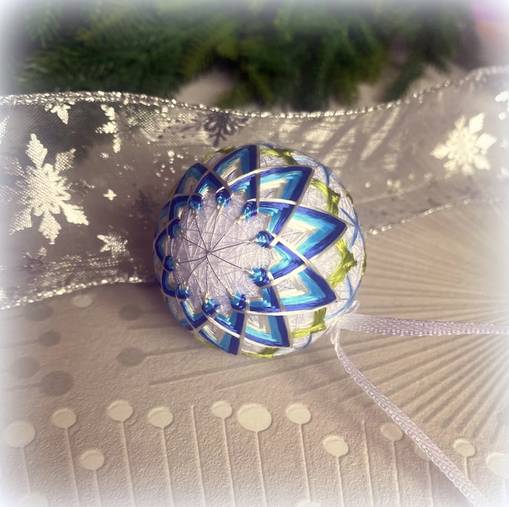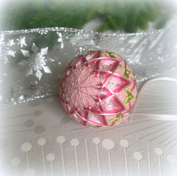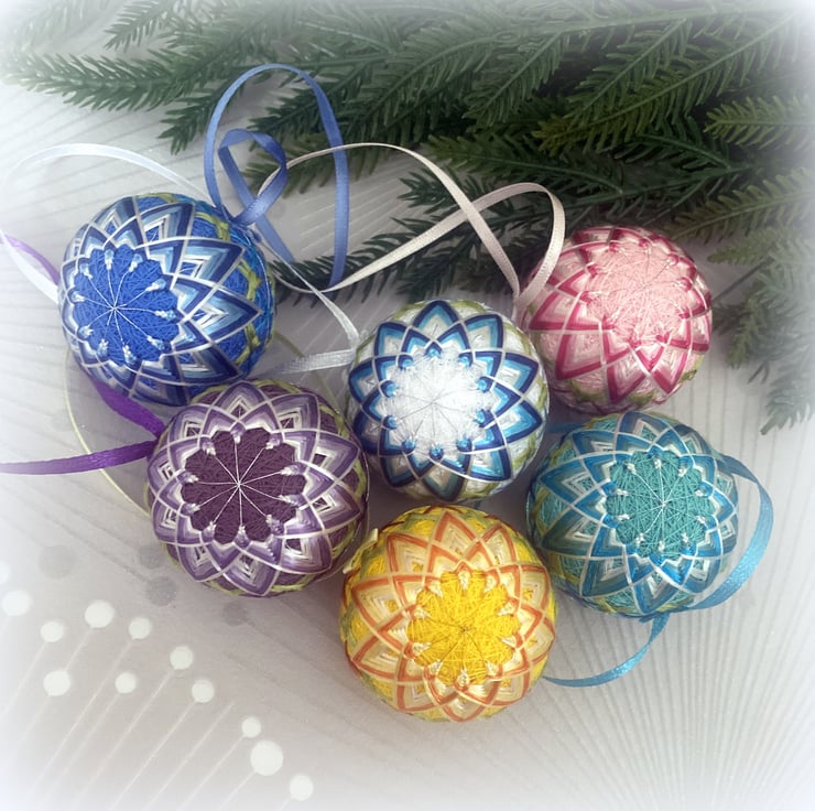 Your set arrives beautifully and securely packaged in individual origami-folded gift boxes, tied with a elegant satin ribbon for immediate hanging. As a special festive bonus, I've included a seventh temari ball in classic vibrant red with luxurious gold accents - a little extra sparkle for your tree or a surprise for the recipient.