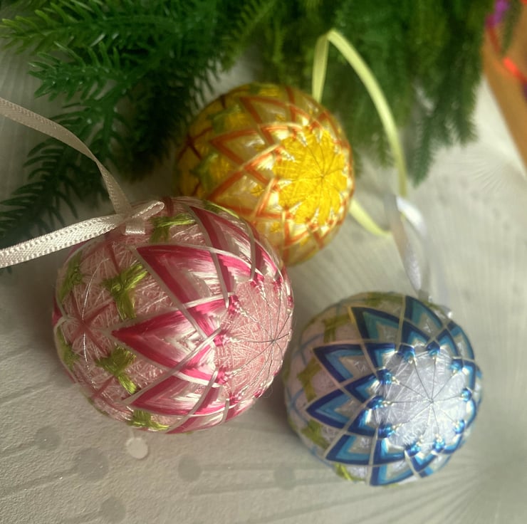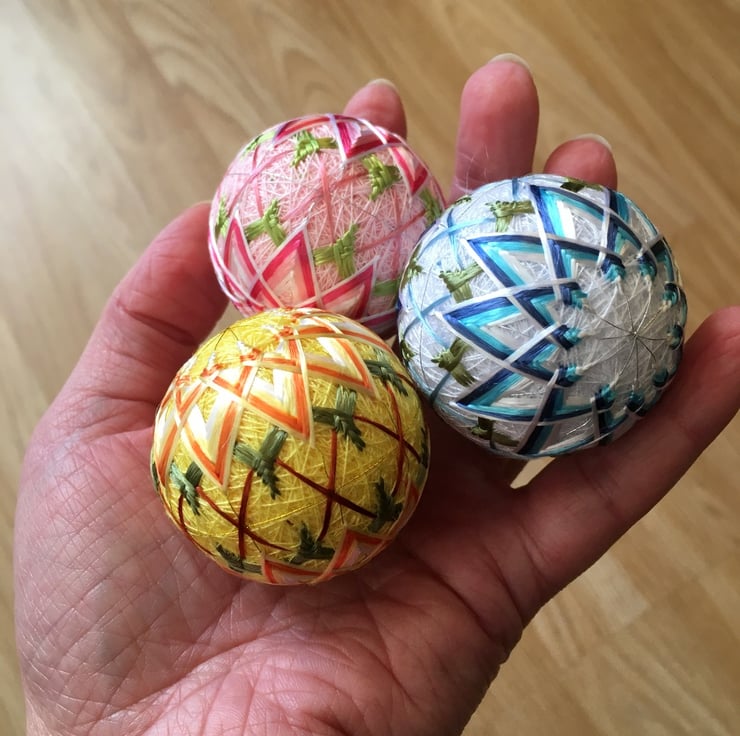 Temari are Japanese traditional art, highly valued and cherished gifts, symbolising deep friendship and loyalty. Also, the brilliant colours and threads used are symbolic of wishing the recipient a brilliant and happy life.