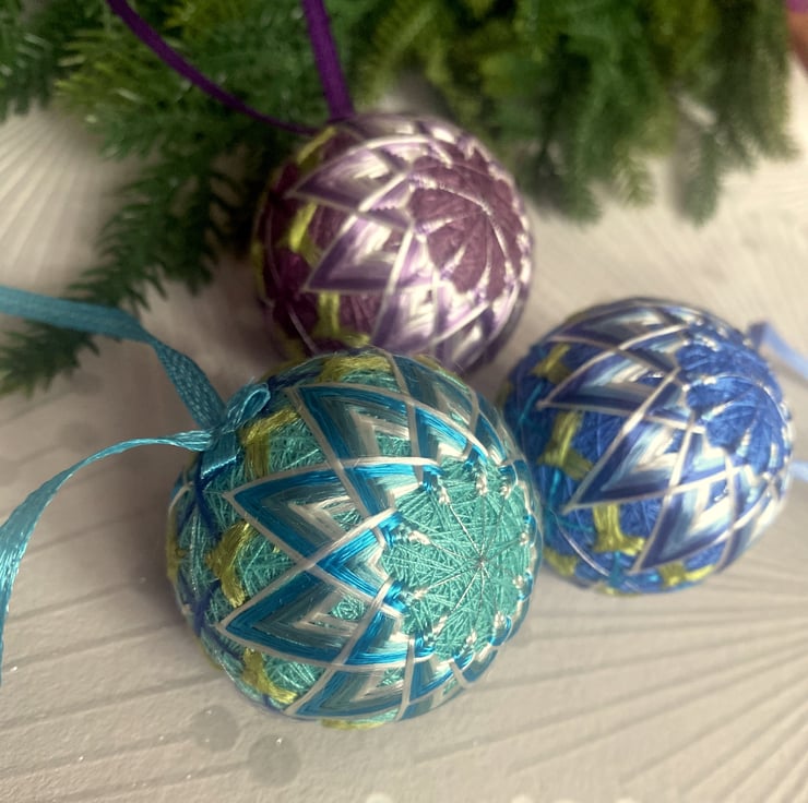 Enchanting mini chrysanthemum temari ball set - a rainbow of handmade Christmas joy.