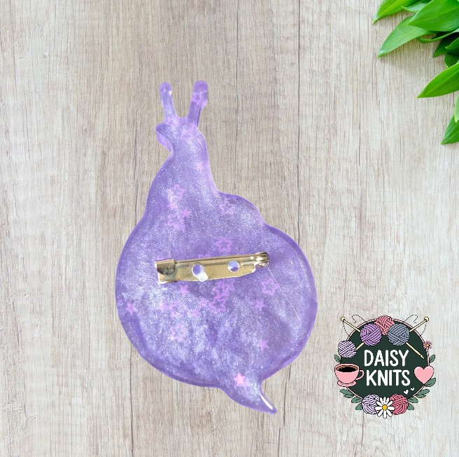 Add a touch of whimsy to your outfit with our unique handmade sparkly purple snail brooch with glittery purple stars. This adorable accessory is meticulously crafted from eco-friendly epoxy resin, making it not only stylish but also sustainable.
