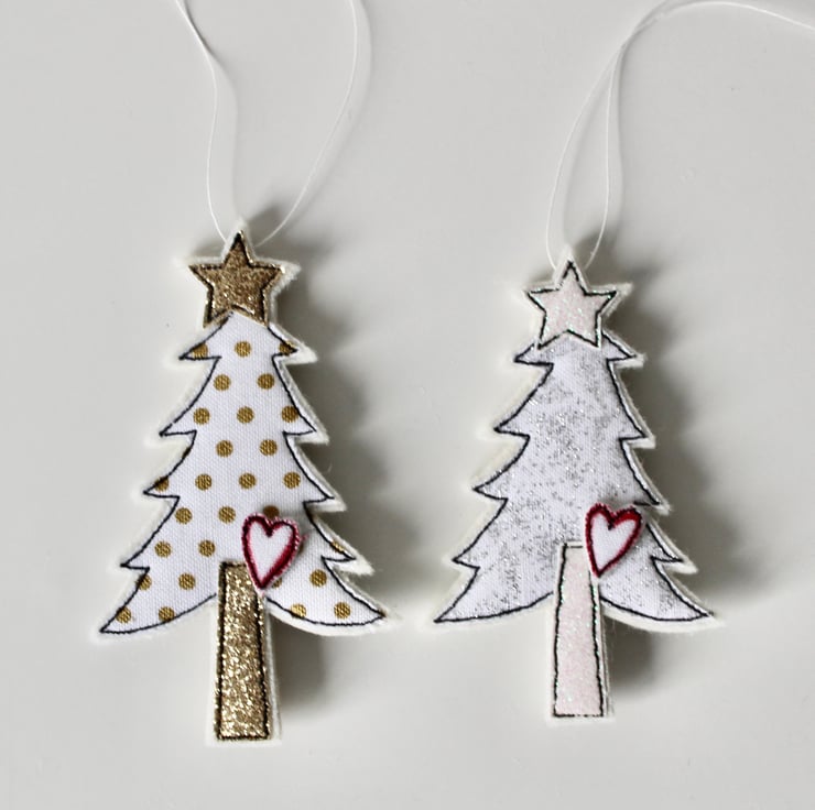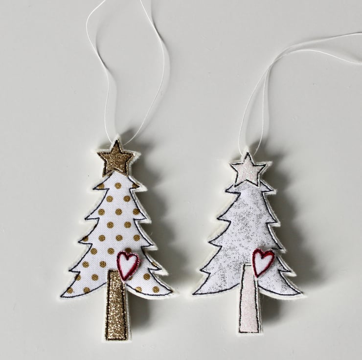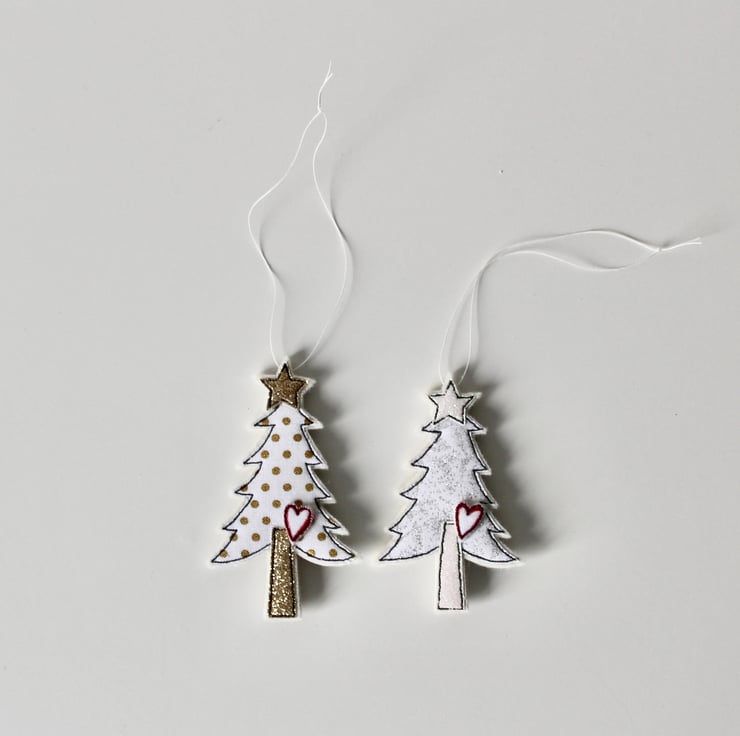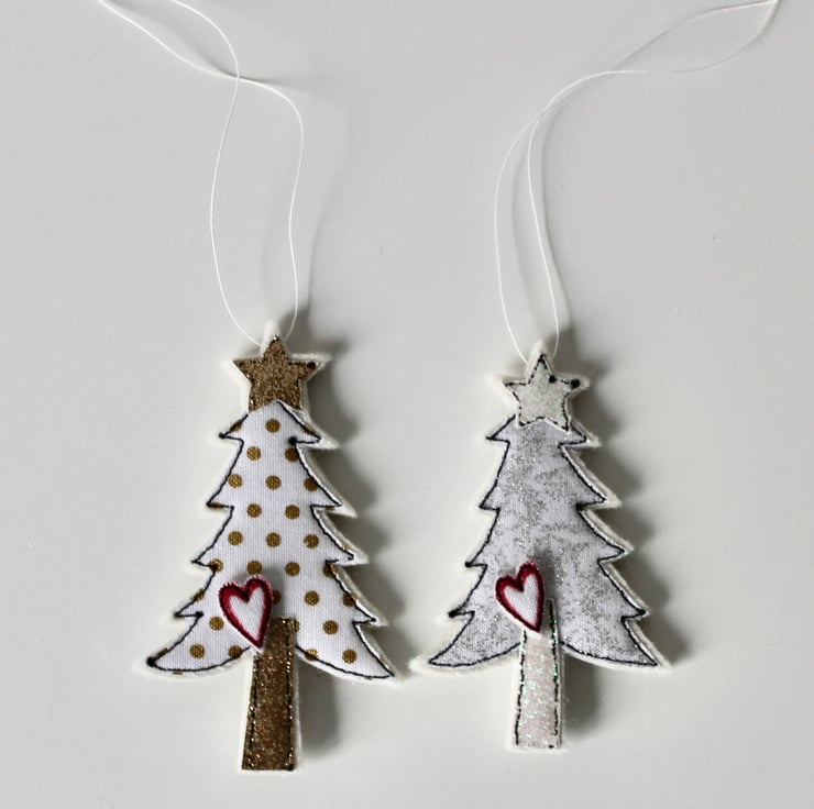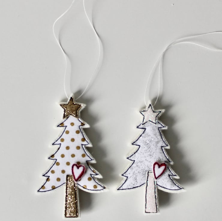 Delightful hanging decorations which are created using 100% wool felt, glitter cloth, free hand machine embroidery and cut out by hand, using a very sharp pair of scissors.
