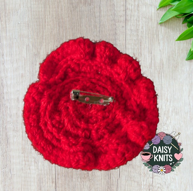 Add a pop of color and style to your attire with our hand-knitted red flower brooch. Each piece is carefully crafted to perfection, showcasing intricate details and craftsmanship.