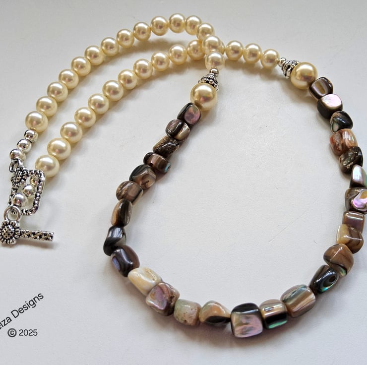 Designer Abolone Shell Nugget & Shell Pearl Necklace