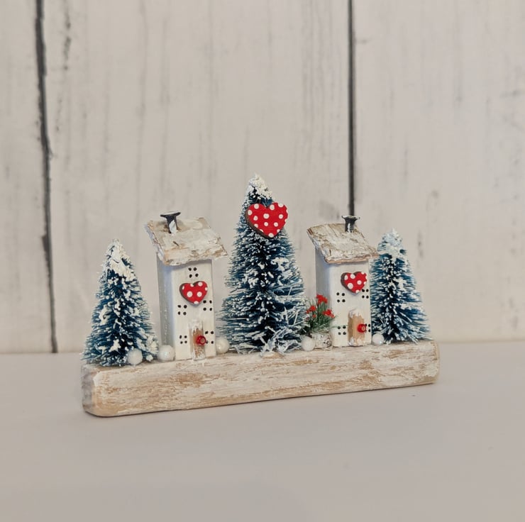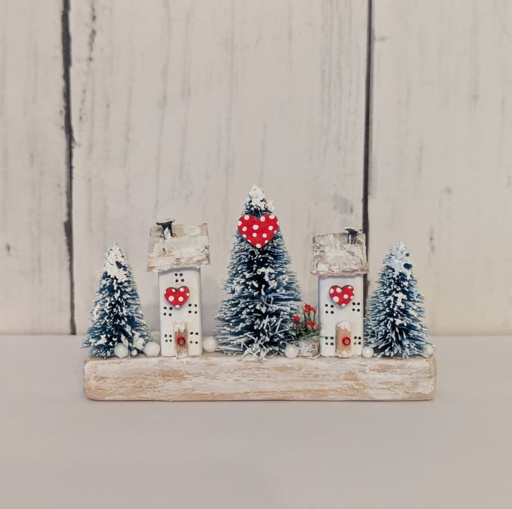 'Christmas Heart Cottages' is a tiny handmade one of a kind Christmas decoration.