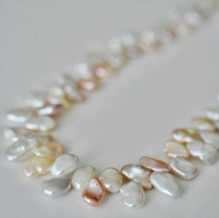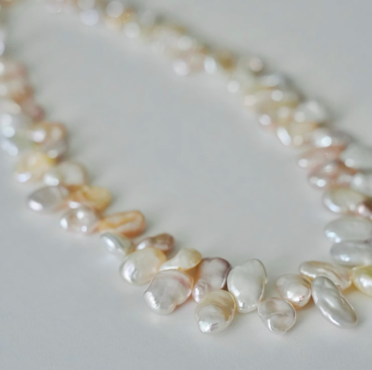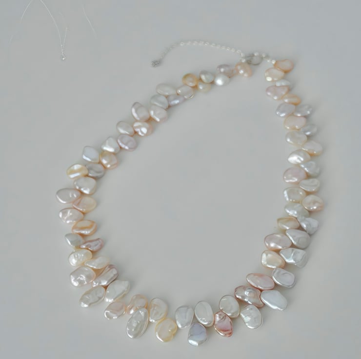 Introducing our exquisite Keshi Freshwater Pearl Necklace, a true statement piece that embodies elegance and individuality. Each Keshi pearl is uniquely shaped, showcasing its organic beauty and lustrous finish. Handcrafted with high-quality sterling silver, this necklace perfectly complements the natural allure of the pearls, ensuring both durability and sophistication.