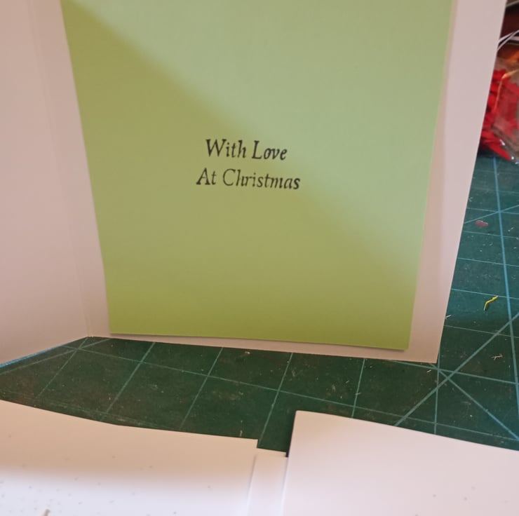 Pale green insert with festive message