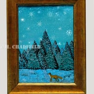 I love experimenting with colour, and really liked the contrast between the vivid sunset and the deeply shadowed trees and animals at the bottom of the picture. Originally intended to be presented on a wooden stand, it became clear that wasn't an option once I had finished the painting, as the Deer and the trees were too near the edge! My fantastic framer has worked her magic and the entire painting is visible in the frame. I think the gold colour really complements the colours in the painting. It would make a nice pop of colour on any wall.