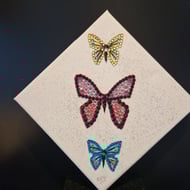 A pair of small sequinned multicoloured butterflies. Each measuring 5x4 inches. I have included a picture of them with a larger butterfly, to show the size difference. The large butterfly is also available from my shop.