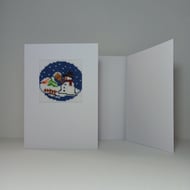 Festive Bear Christmas Card – Hand-Stitched Embroidery – Unique Holiday Keepsake