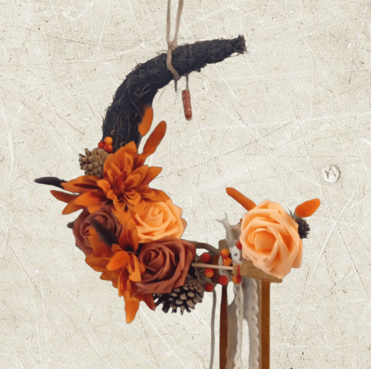 Celebrate the magic of imperfection and the beauty of new beginnings with this Chaotic beginner witch wreath a lovingly hand crafted piece that embraces the wild, untamed spirit of the learning witch.