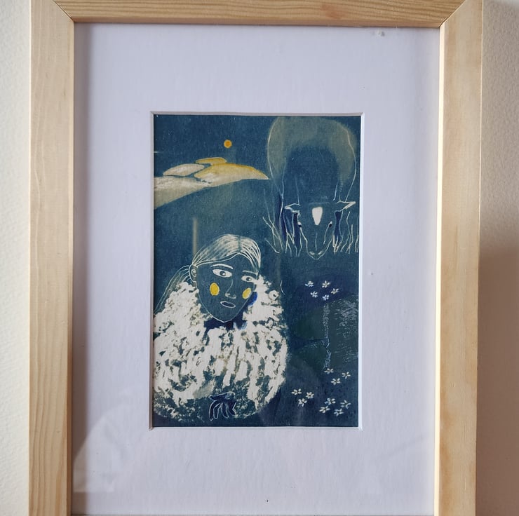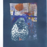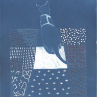 This is a cyanotype piece on thick watercolour paper, with a little bit of bleaching using soda crystals and tissue collage. This piece on its own is small enough to fit in a 18x24cm frame. But you could also purchase it matted in a frame of my choice. If you purchase frameless, I will ship the work flat with stiff protection. I sometimes use recycled packaging.