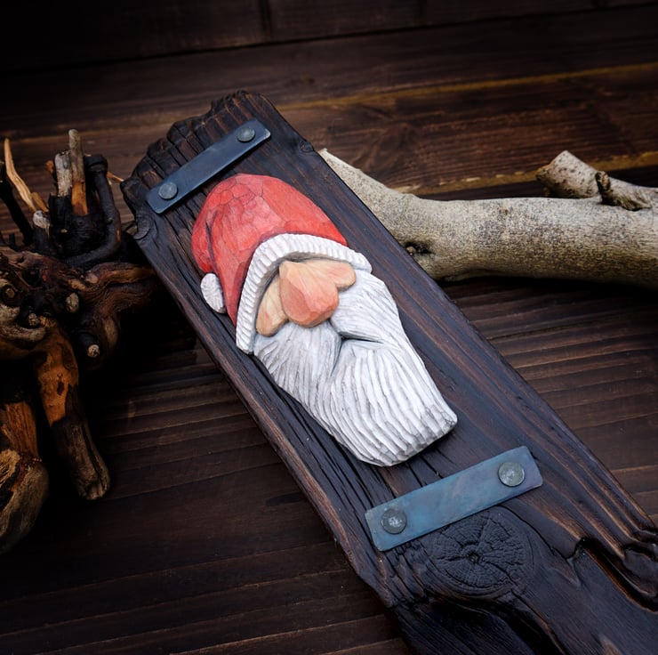 Hand-Carved Santa Claus Wall Art- Rustic Christmas Decoration - Personalised (A)