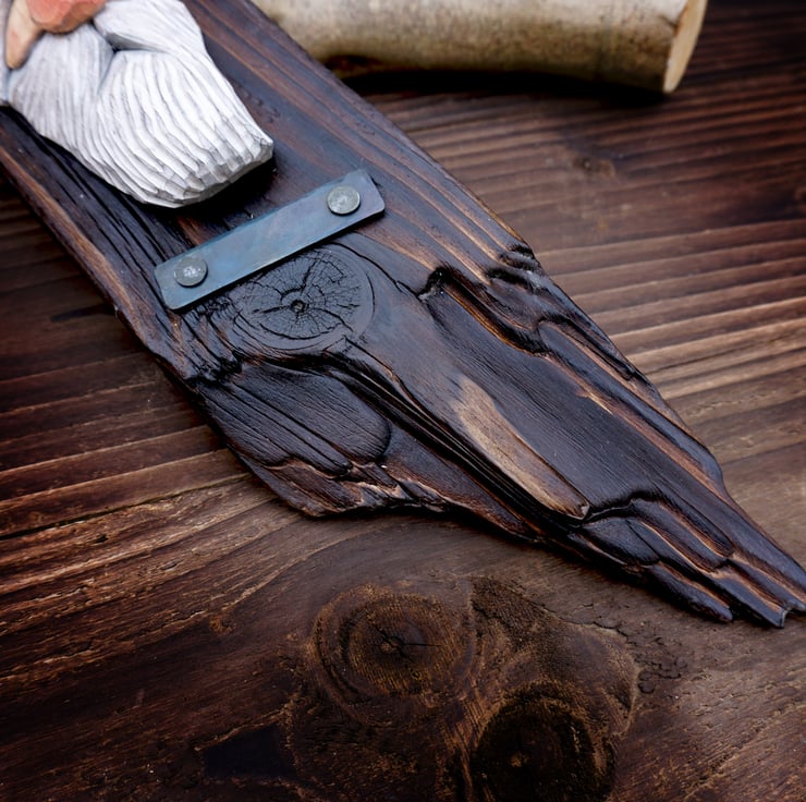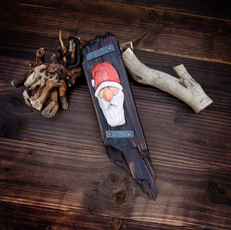 Each Santa is carefully hand-carved on an authentic old burnt wood board, bringing rustic charm and farmhouse character to your home. To complete the look, the piece is accented with hand-forged steel details, adding a timeless, artisan touch.