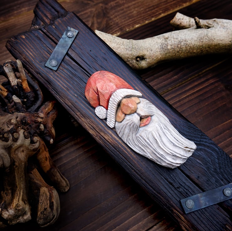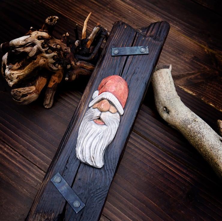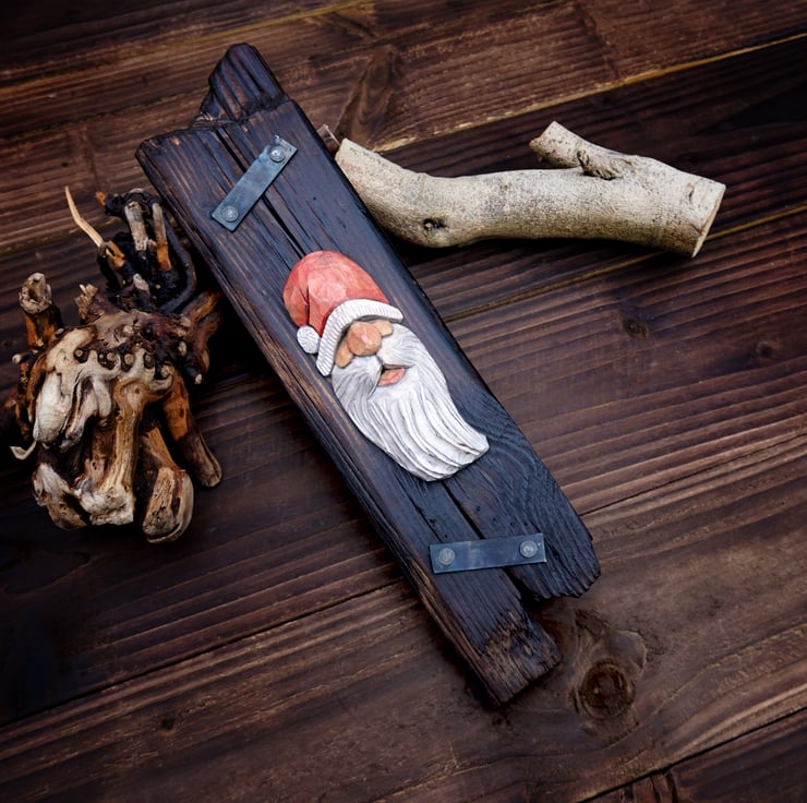 Hand-Carved Santa Claus Wall Art- Rustic Christmas Decoration - Personalised (B)