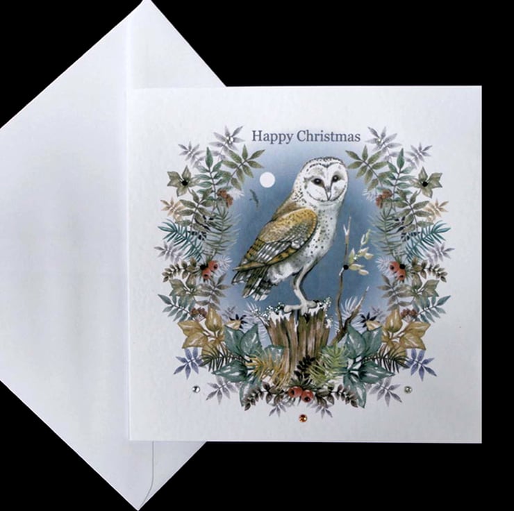 A Luxury Christmas Owl Garland - Happy Christmas Handmade Card quantity