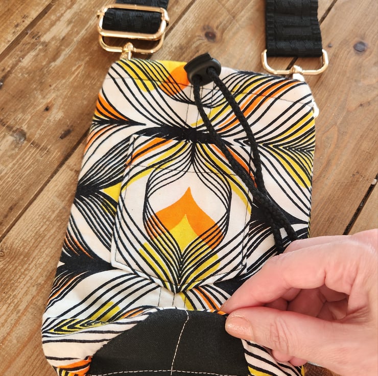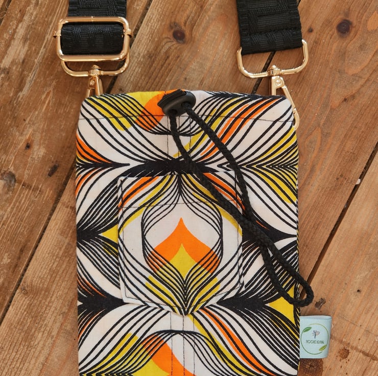 A cross-body water cooler made from a single reclaimed garment bought from one of my local charity shops. So it has a sustainable, stylish, and totally unique story behind it. Only one available and it's perfect for festivals, gigs, and sunny adventures. You’ve got something eco-conscious, handmade, and functional to help you enjoy future adventures.