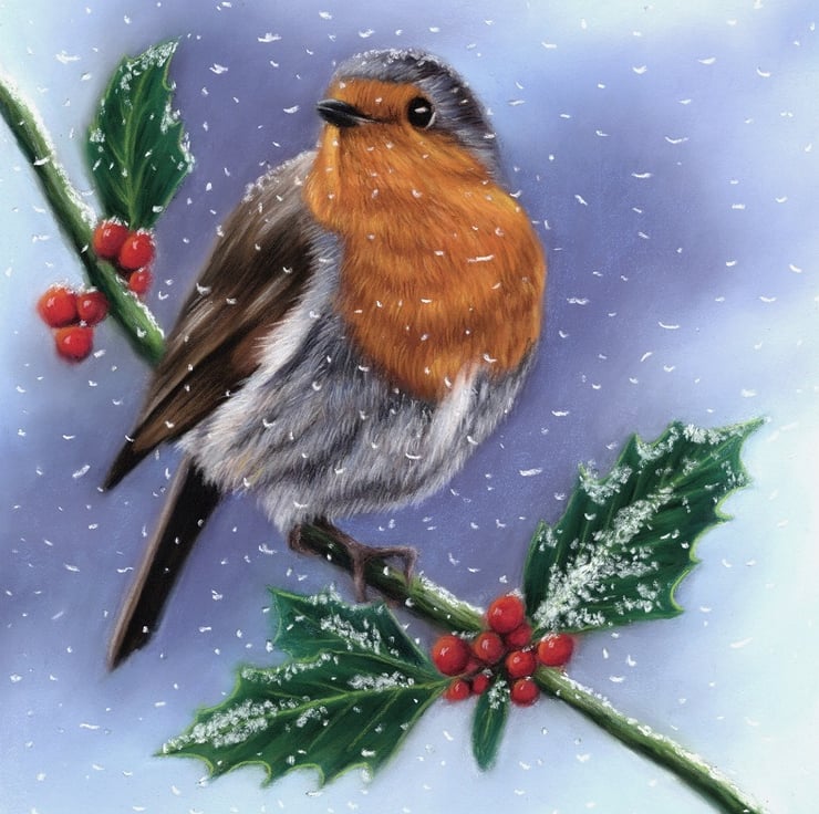 6”x 6” greeting card featuring an image of a robin. The original artwork was created using soft pastels.