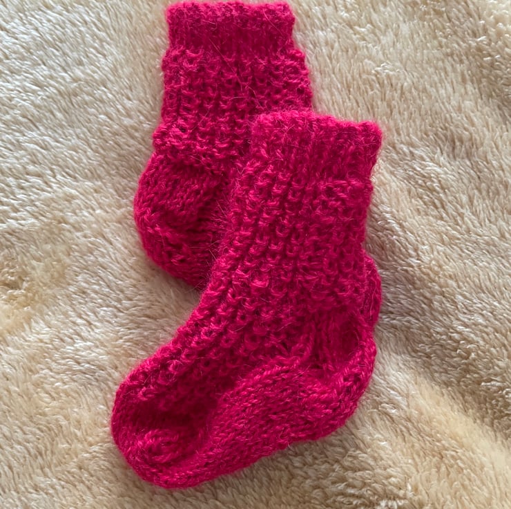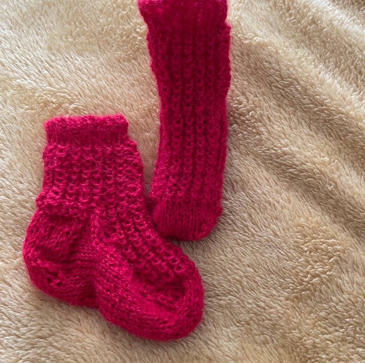 These red socks are hand knitted in a soft Alpaca yarn.