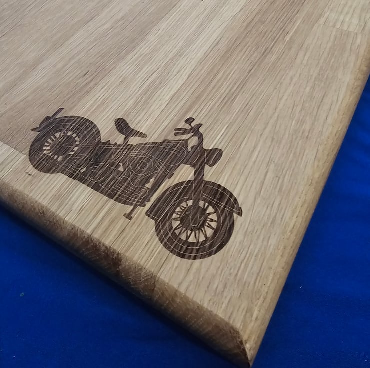 Laser engraved motor bike in bottom right corner. Perfect for any biker.
