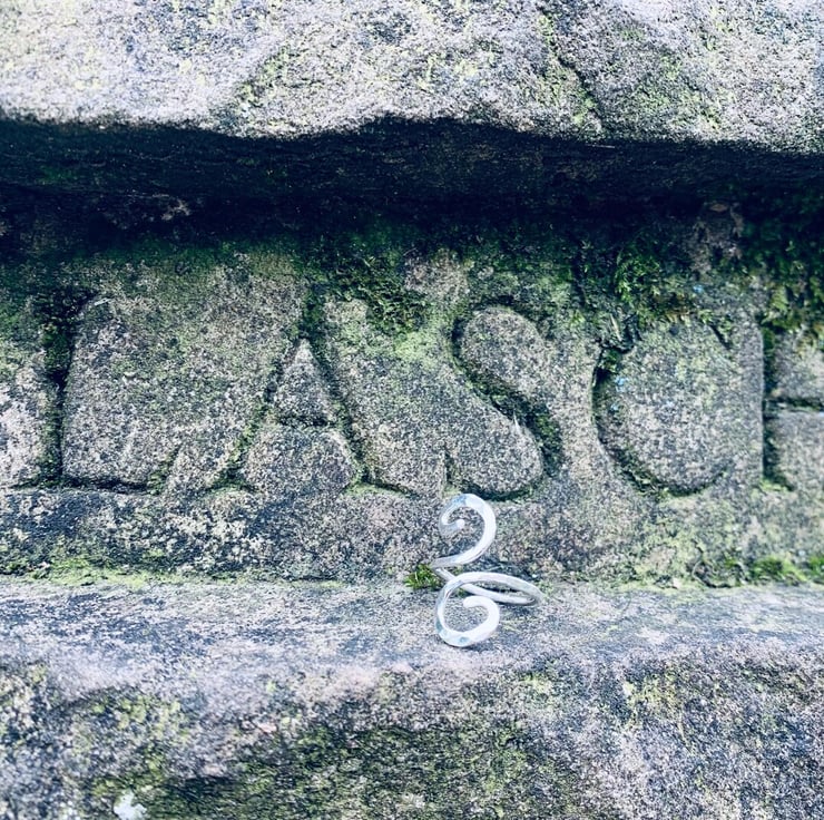 Made from 1.5 mm sterling silver wire, forging the wire into spirals and hammering down creating texture and strength.