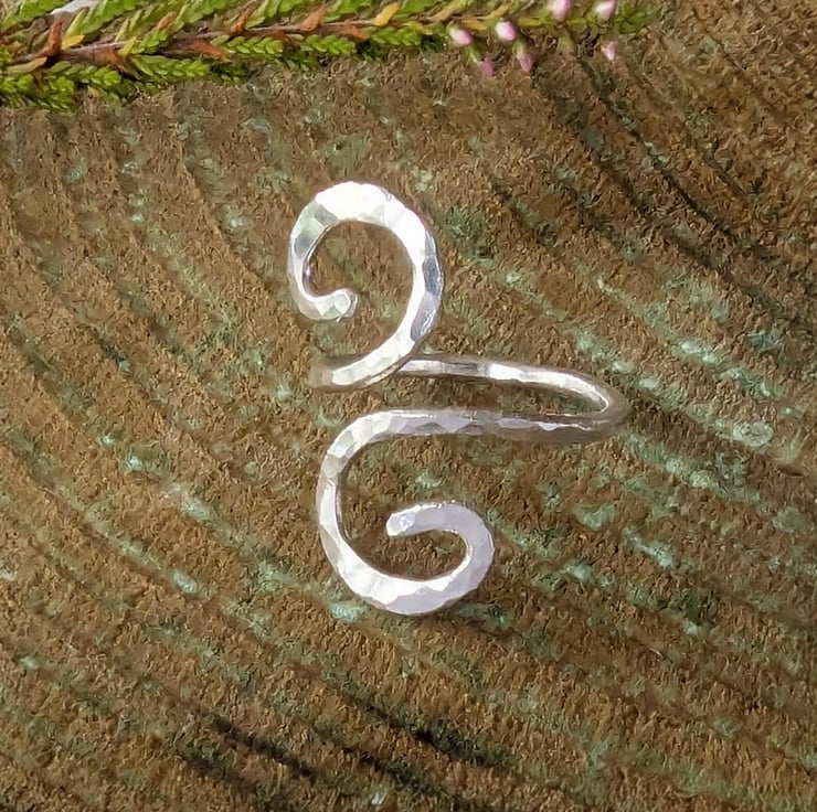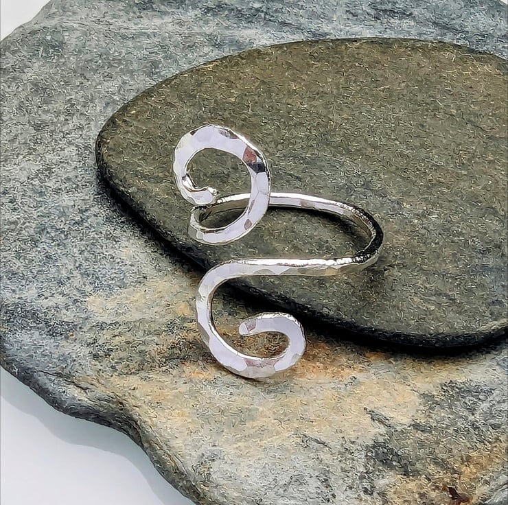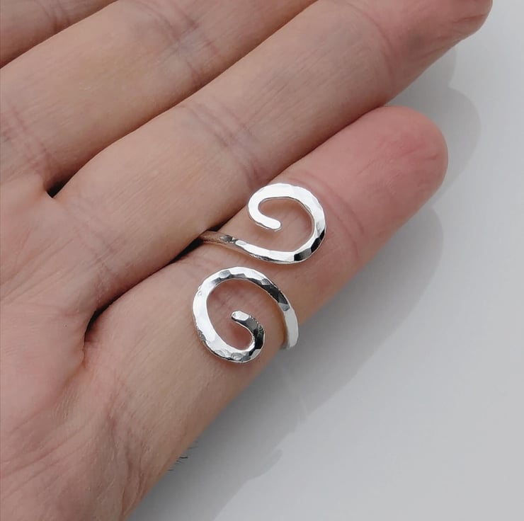 Double spiral open sterling silver ring