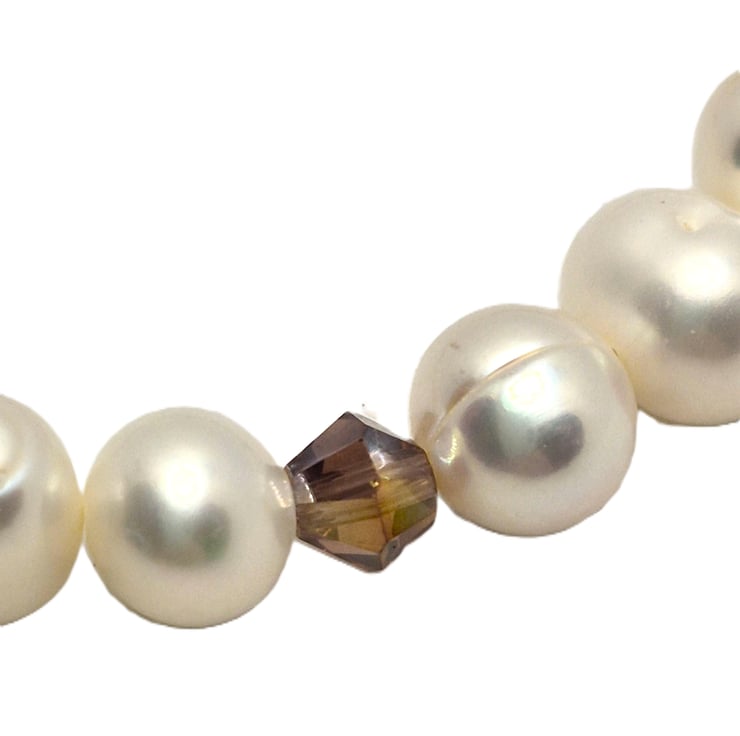 A stretchy bracelet made with natural freshwater pearls and 5 spaced out Swarovski crystals