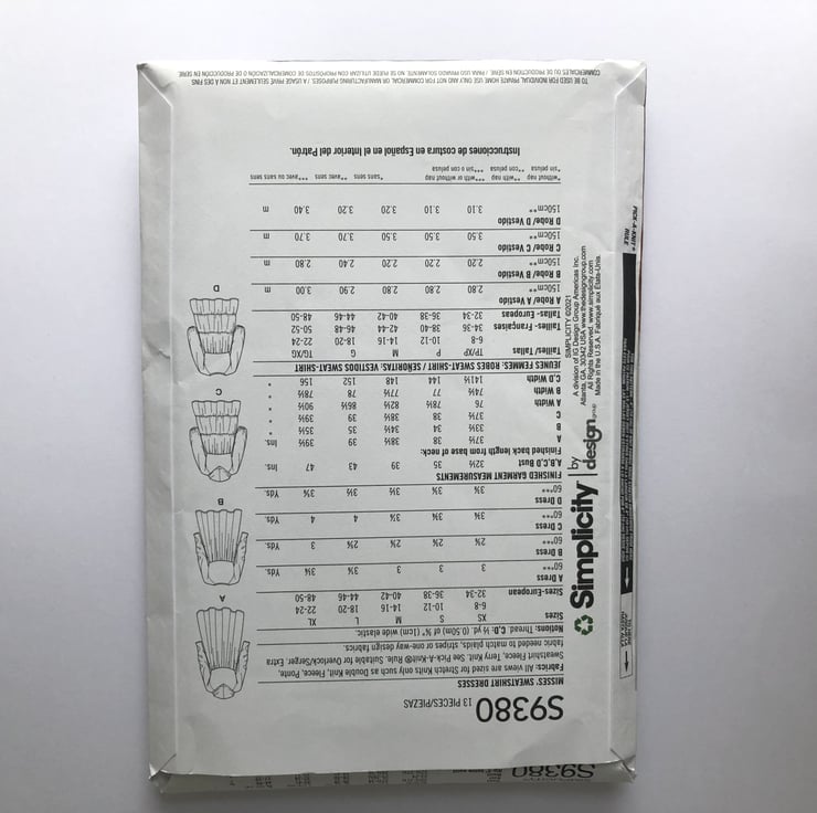 Paper Sewing Pattern, Misses’ sweatshirt dresses for knit fabric S9380