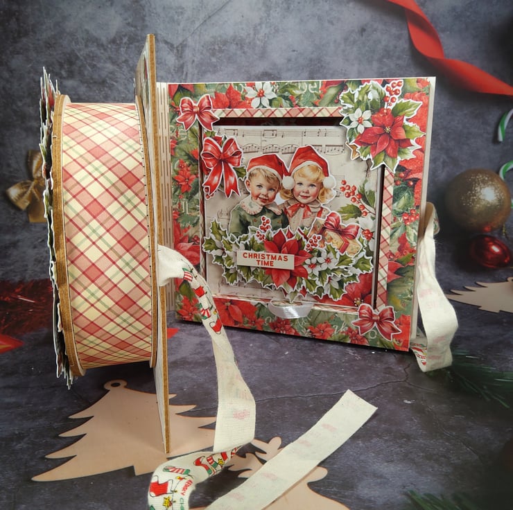 A unique handmade box shaped like a vintage camera, designed to capture the magic of Christmas in a truly special way.