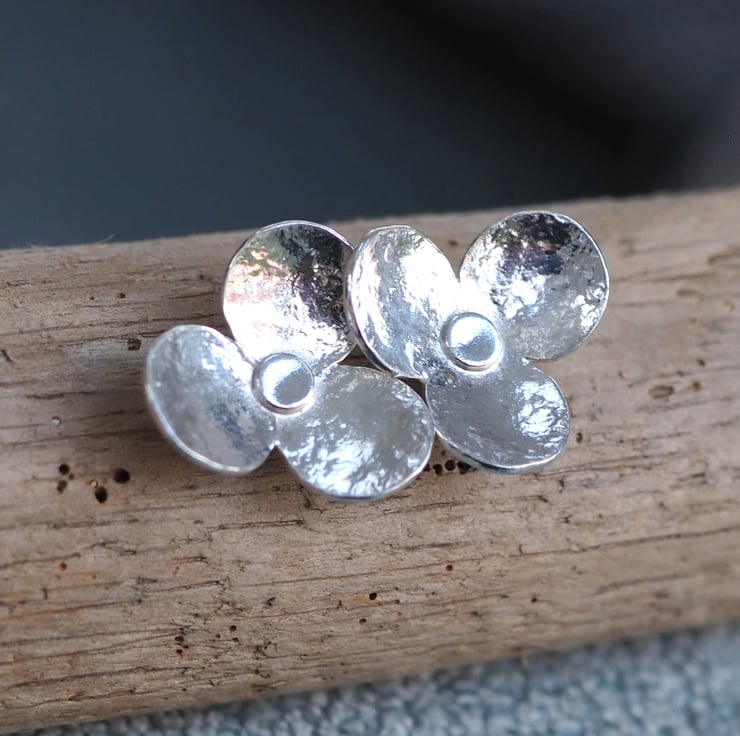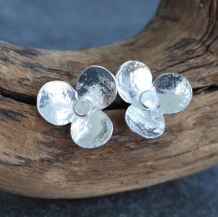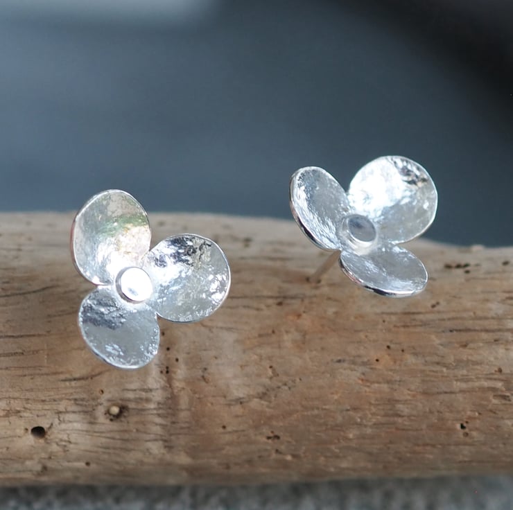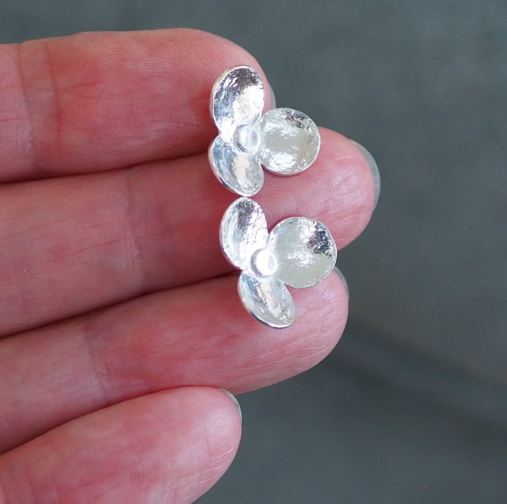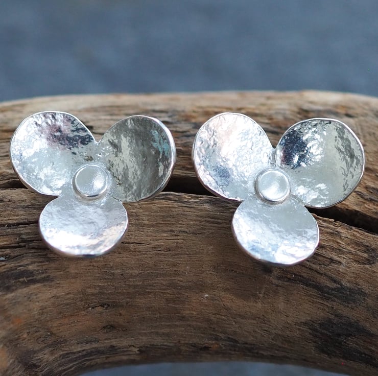 These hammered silver flower stud earrings are the perfect pair of everyday earrings. They feature 3 large petals and have been lightly hammered with a vintage hammer to give a bit of texture.