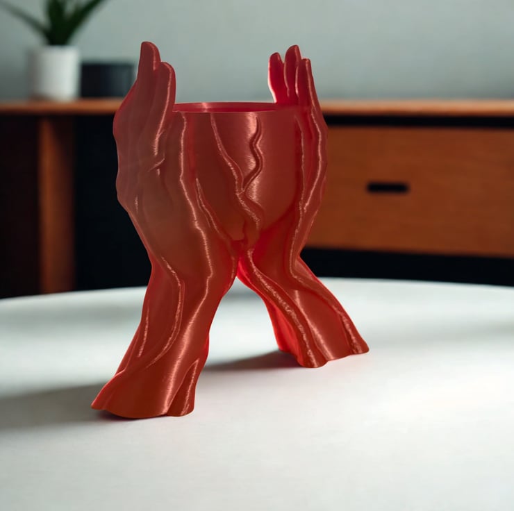 The Keeper's Cupped Hands: A vessel sculpted by nature and formed by touch. This striking piece, with its vein-like texture and sylphlike shape, cradles your favorite plants or keepsakes with an organic, protective embrace.