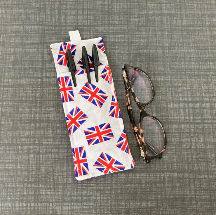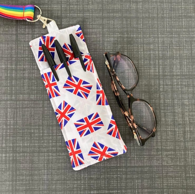 Union Jack Fabric Double Sided Glasses and Pen Holder for Lanyards.