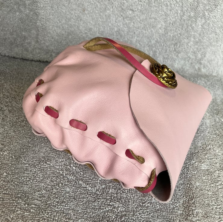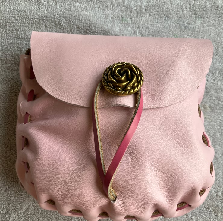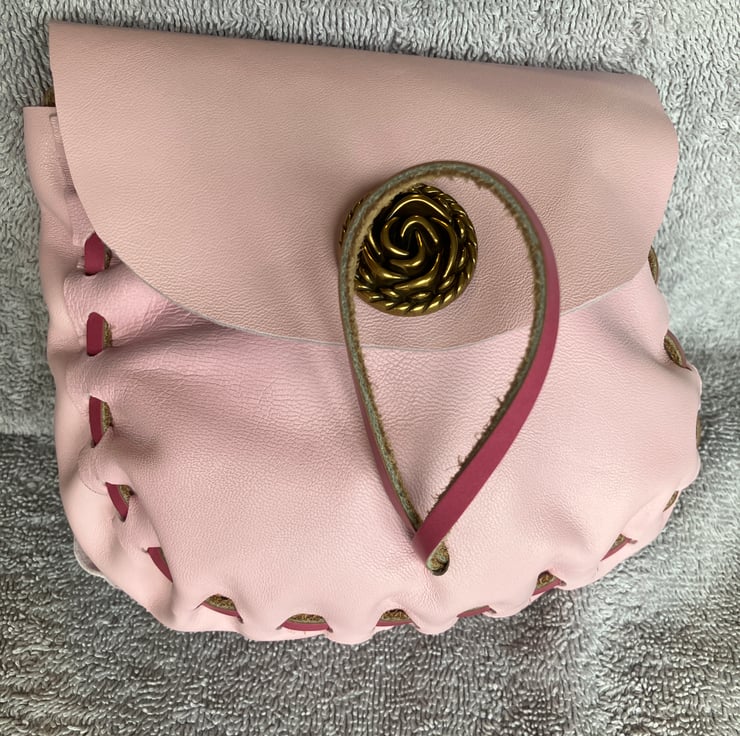 Light Pink coloured Leather Medieval / Renaissance Style Pouch with a Brass Rose button closure