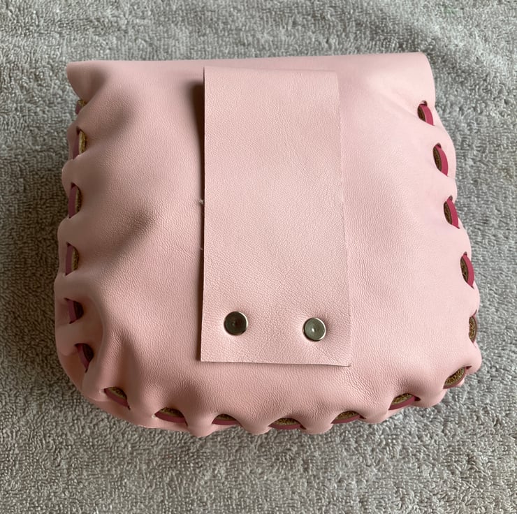 Light Pink coloured Leather Medieval - Style Pouch - FREE SHIPPING