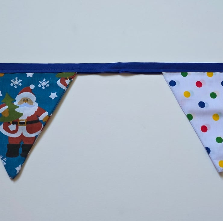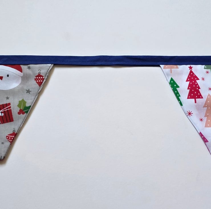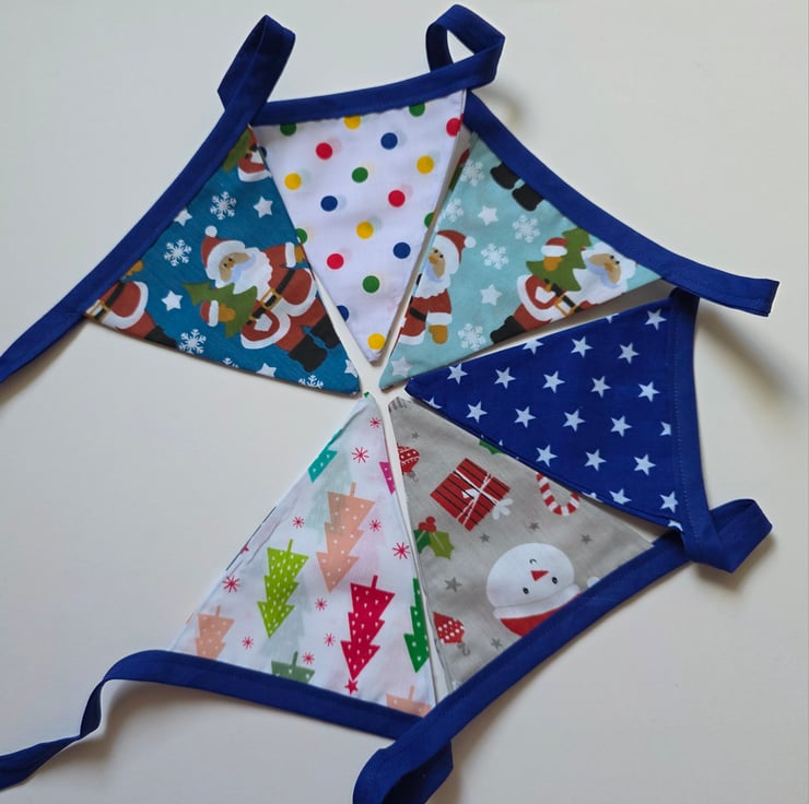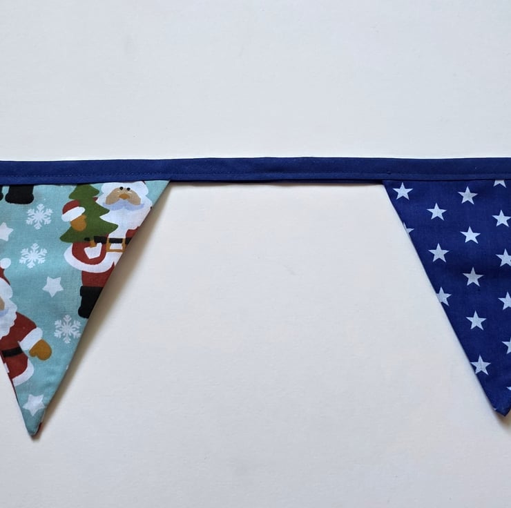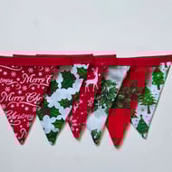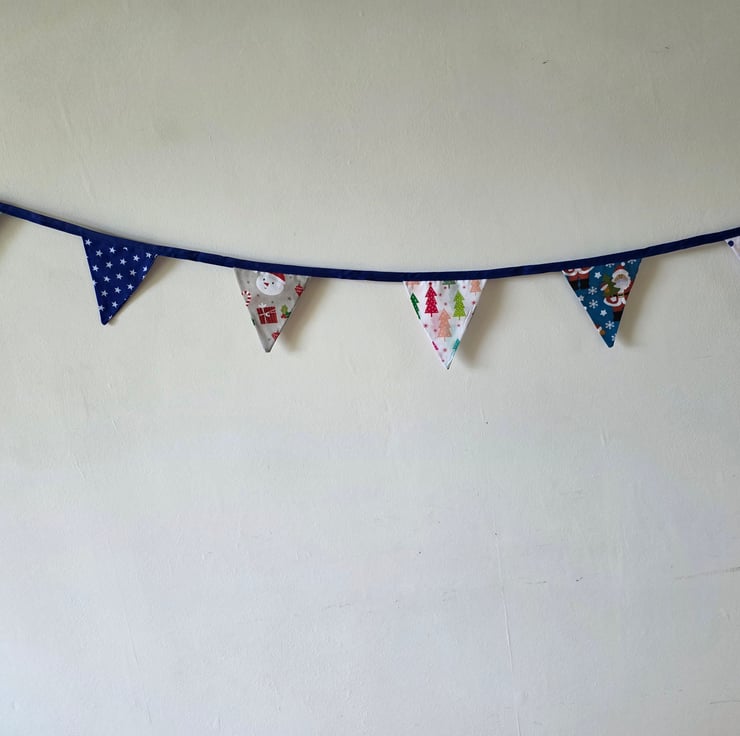 This bunting is a six pennants repeating pattern of different Christmas fabrics.