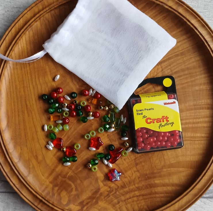 1 bag of coordinating beads plus box of red 5mm pearl beads