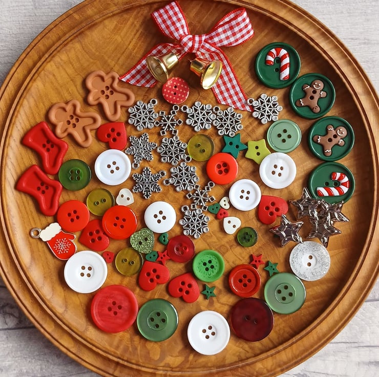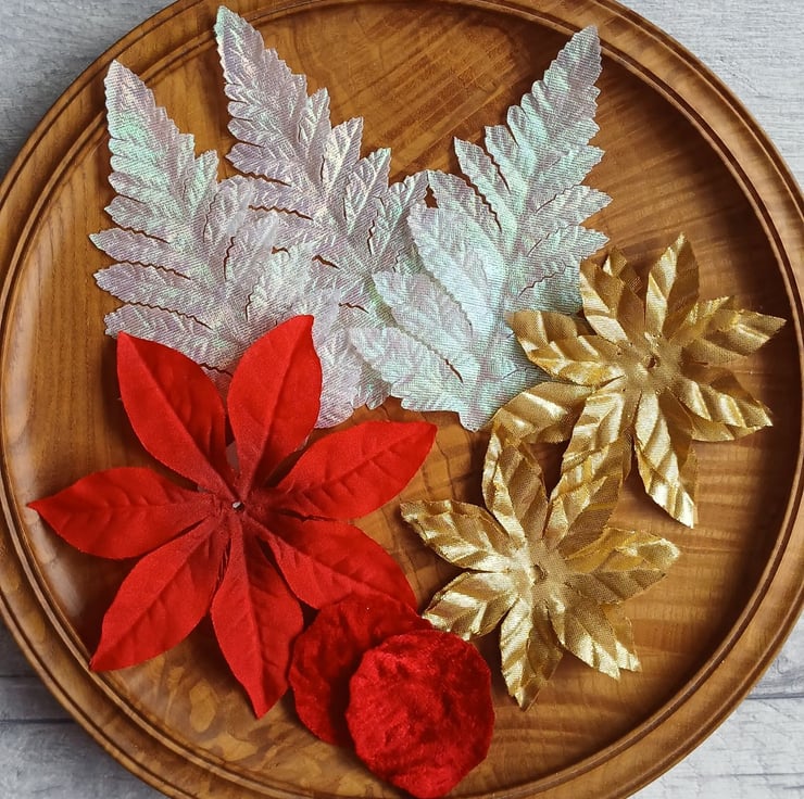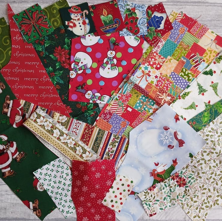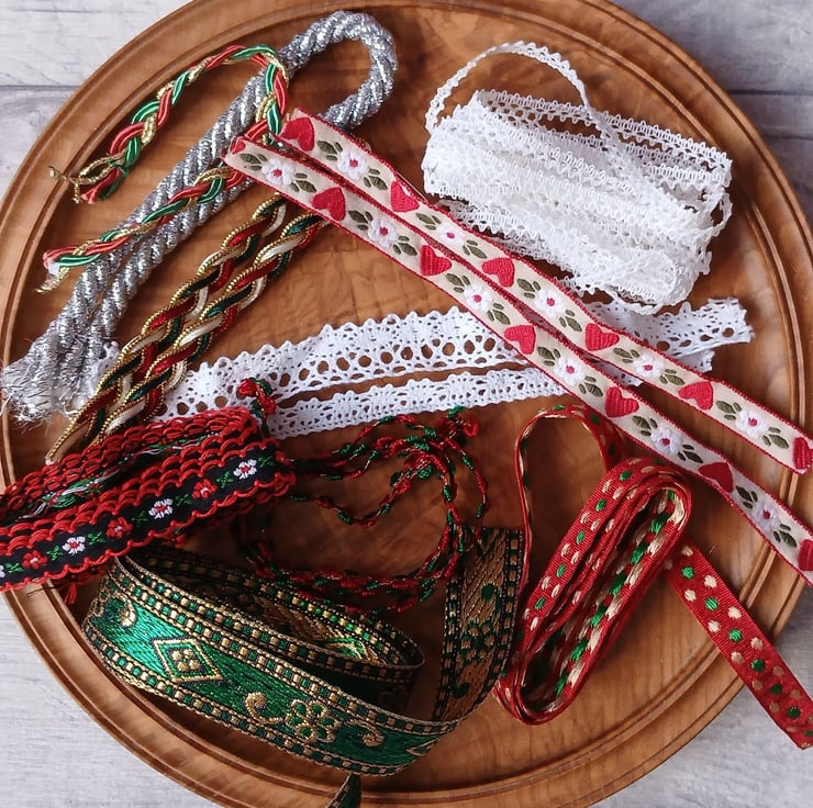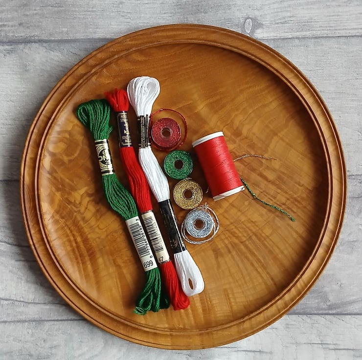 This is my second curated collection of festive fabrics, thread, beads, buttons, trims and embellishments for slow stitching or other craft projects. Fabrics include a piece of interfacing as a base, quilting cotton, felt and upholstery remnants with sizes ranging from small scraps to half a metre. Also included are coordinating embroidery threads, metallic threads and sewing cotton, plus a selection of ribbon, lace, braid, buttons, beads, charms and silk flowers - some items are vintage. This would make a lovely Christmas gift for a crafter.