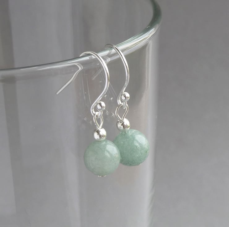 This simple pair of duck egg blue earrings has been created using 8mm jade beads. From the bottom of the Sterling silver ear hooks, each pair of pastel green earrings measures 1.4mm in length. I will include a pair of plastic stoppers, to ensure your dangle earrings remain securely in place.