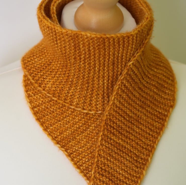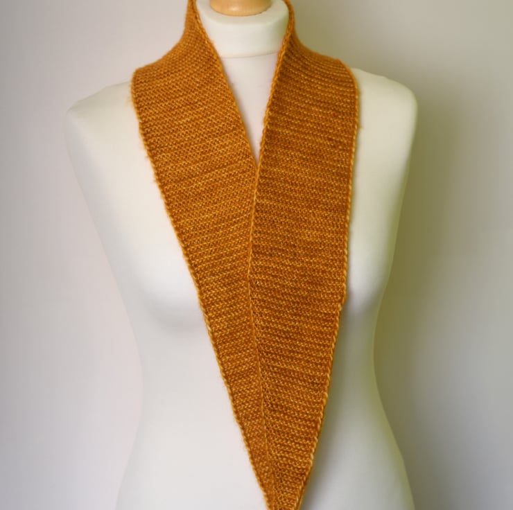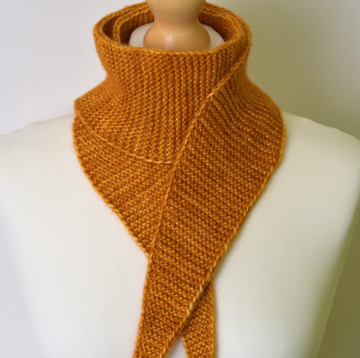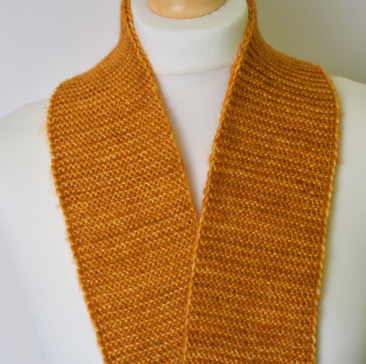 A beautifully soft and lightweight handmade scarflette, knitted from luxurious yarn - a blend of 51% silk and 49% merino wool. Carefully kettle-dyed in small batches, creating a beautiful golden sunset tone with natural depth and variation.
