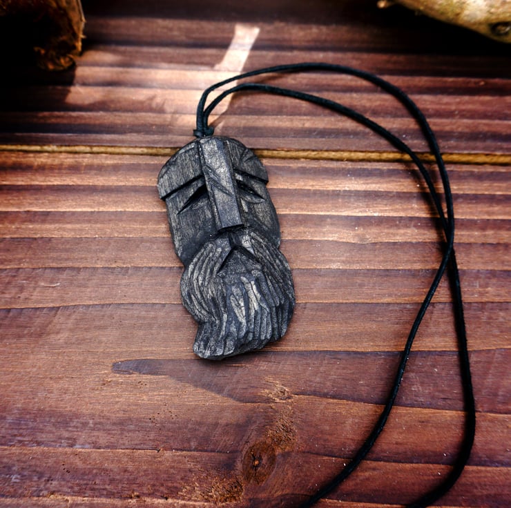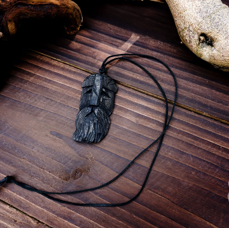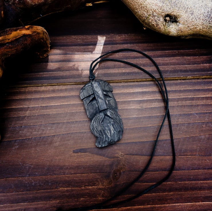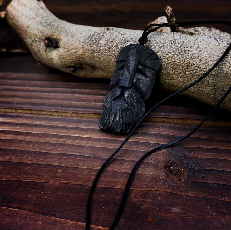 Hand-carved from basswood (lime wood) and finished on a natural leather cord, this pendant is a unique piece of Norse and Germanic-inspired jewelry that reflects the strength and spirit of the Viking age.