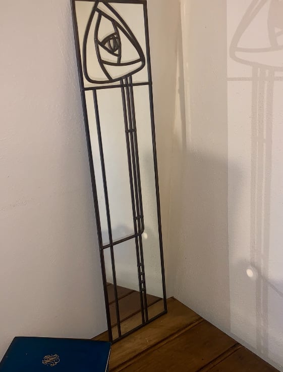 This Art Deco style mirror measures 60cm long by 15cm wide.