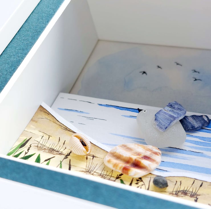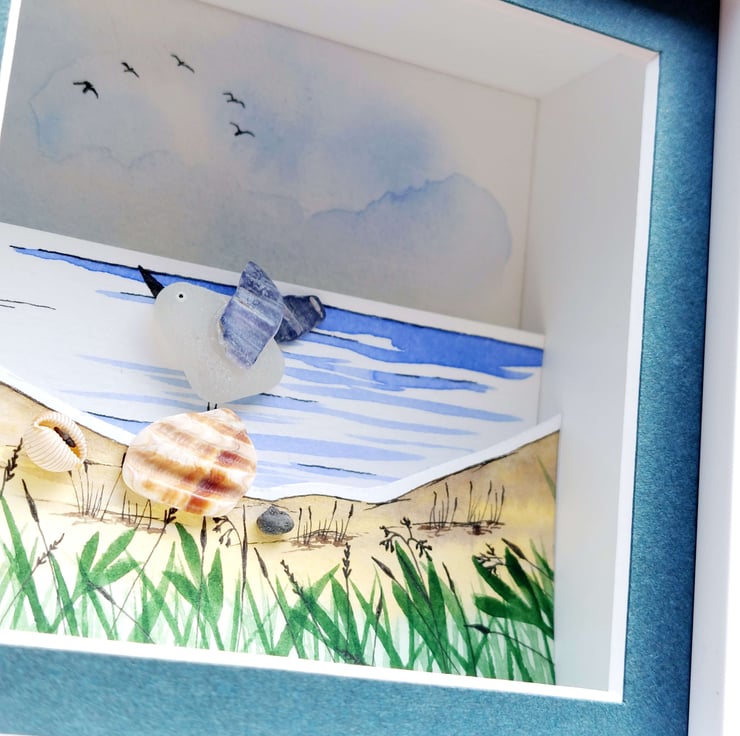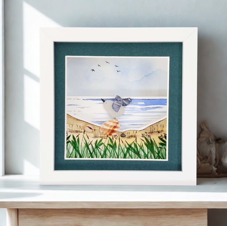 Bring a coastal vibe to your desk with this stunning watercolour 3D Seagull Desk Art. It’s an beautiful and unique gift for friends or loved ones who cherish nature and the seaside. This sea glass coastal artwork adds a touch of the beach to any space, making it the perfect gift for nature enthusiasts.