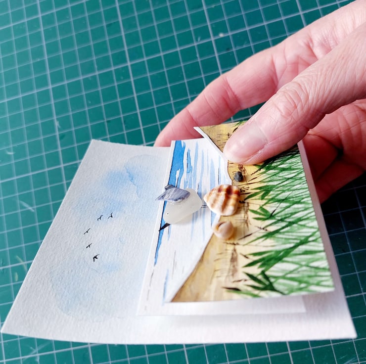 I'm an avid beachcomber and I love the seaside. It makes sense to me to create coastal scenes with materials that I collect from the beach and this piece has a really lovely shaped piece of driftwood which I couldn't resist. As for seagulls, I'm not a huge fan of them when I'm on the beach but somehow they just look really cute when they're painted.