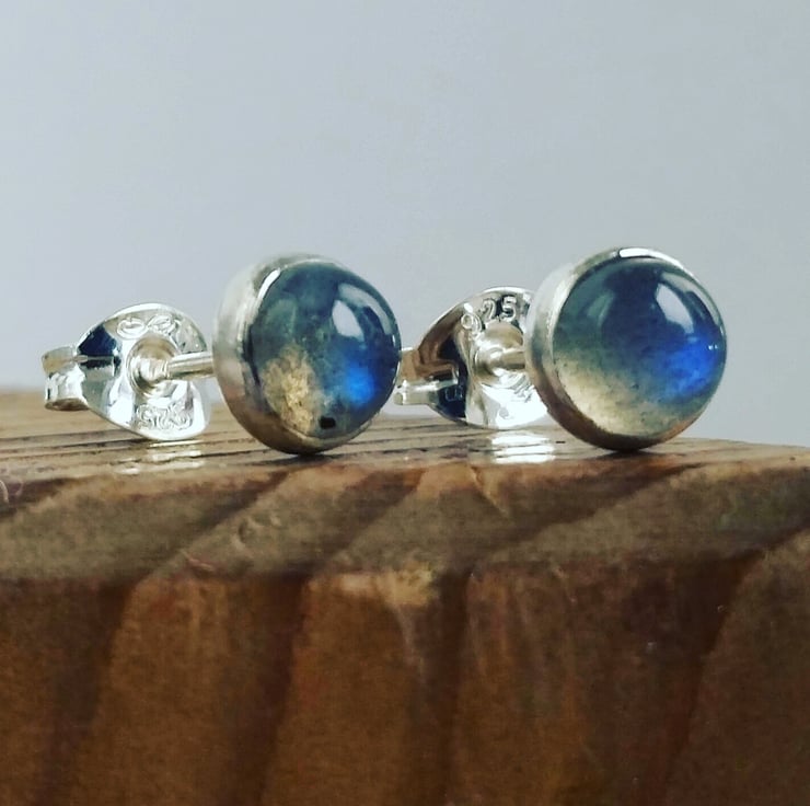 5 mm Labradorite cabochon cut gems set into sterling silver