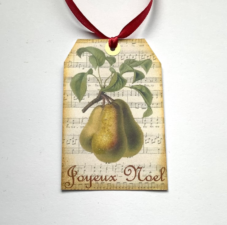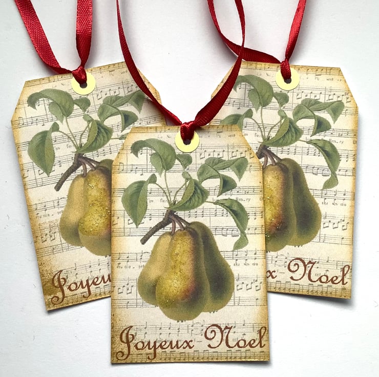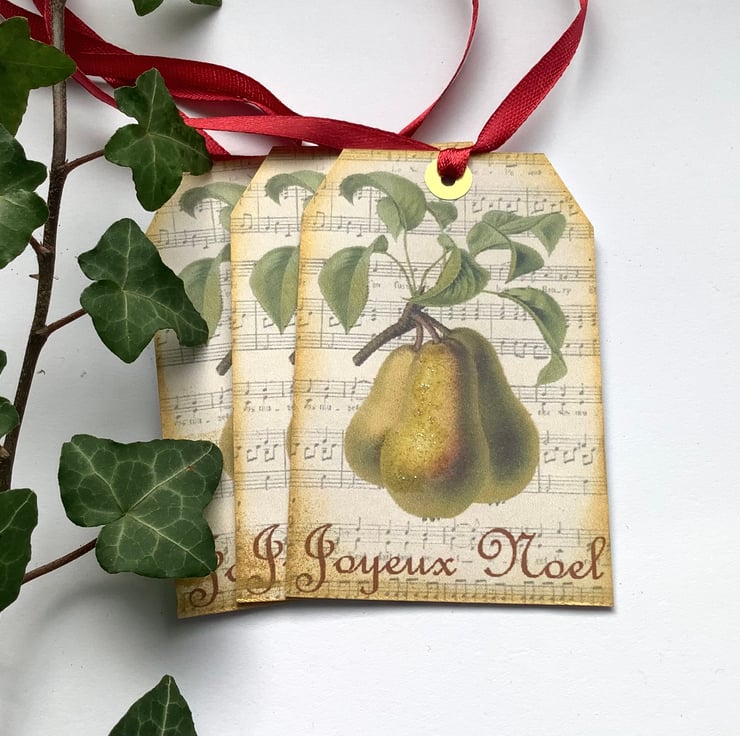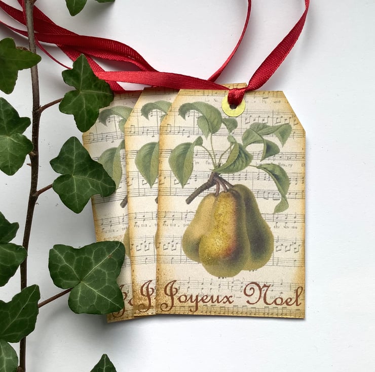 CHRISTMAS gift tags ( set of 3) .Vintage,French-style. Noel. Pear. Botanical.